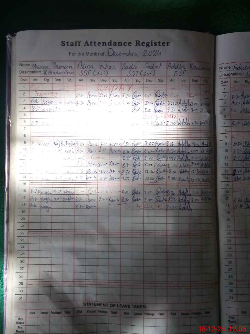 | Leave | Duty | Absent | Maternity | Medical | Ex- Pak |