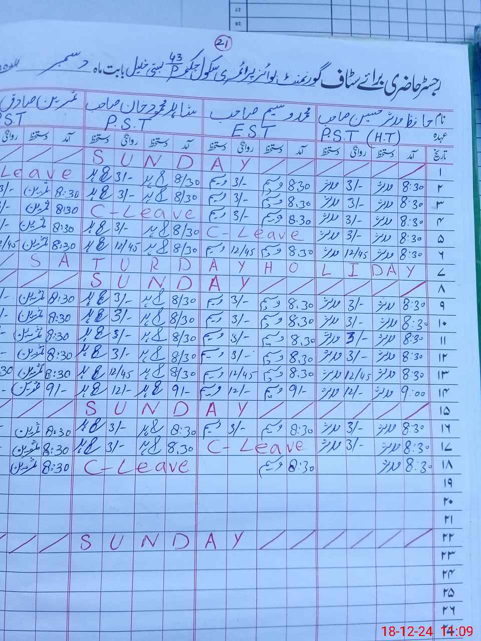 | 31**** | Sh**** Ma**** | PST | Regular | 2 | 0 | 0 | 0 | 0 | 0 | 0 | 0 | 2 | Casual |