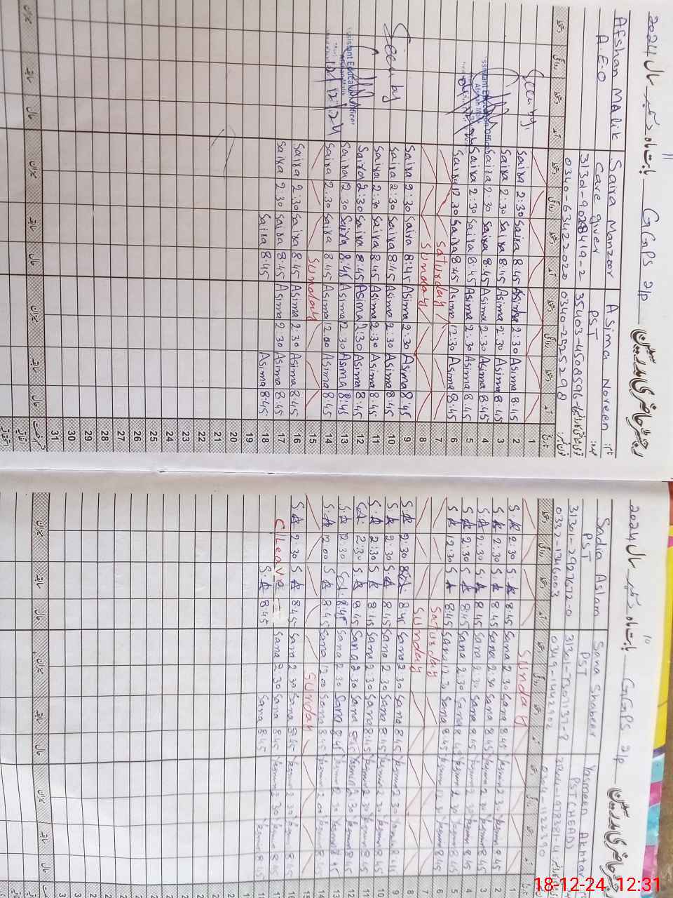 | CNIC | Full Name | Designation | R/C | Absence During Last Calender Month |