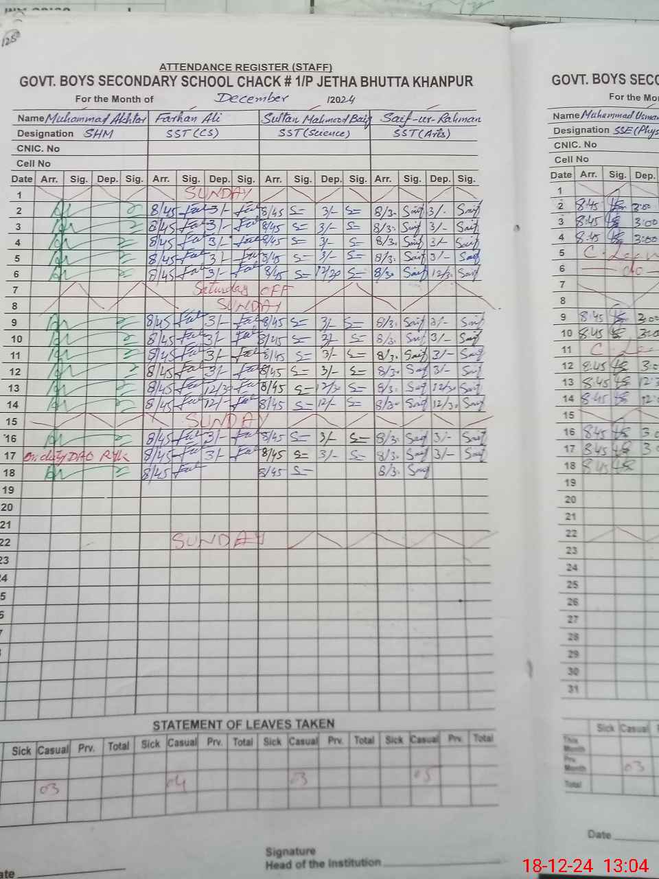 | EMIS Code: 31310006 | Name of School: GHS CHAK 1/P JETHA BHUTTA | |||