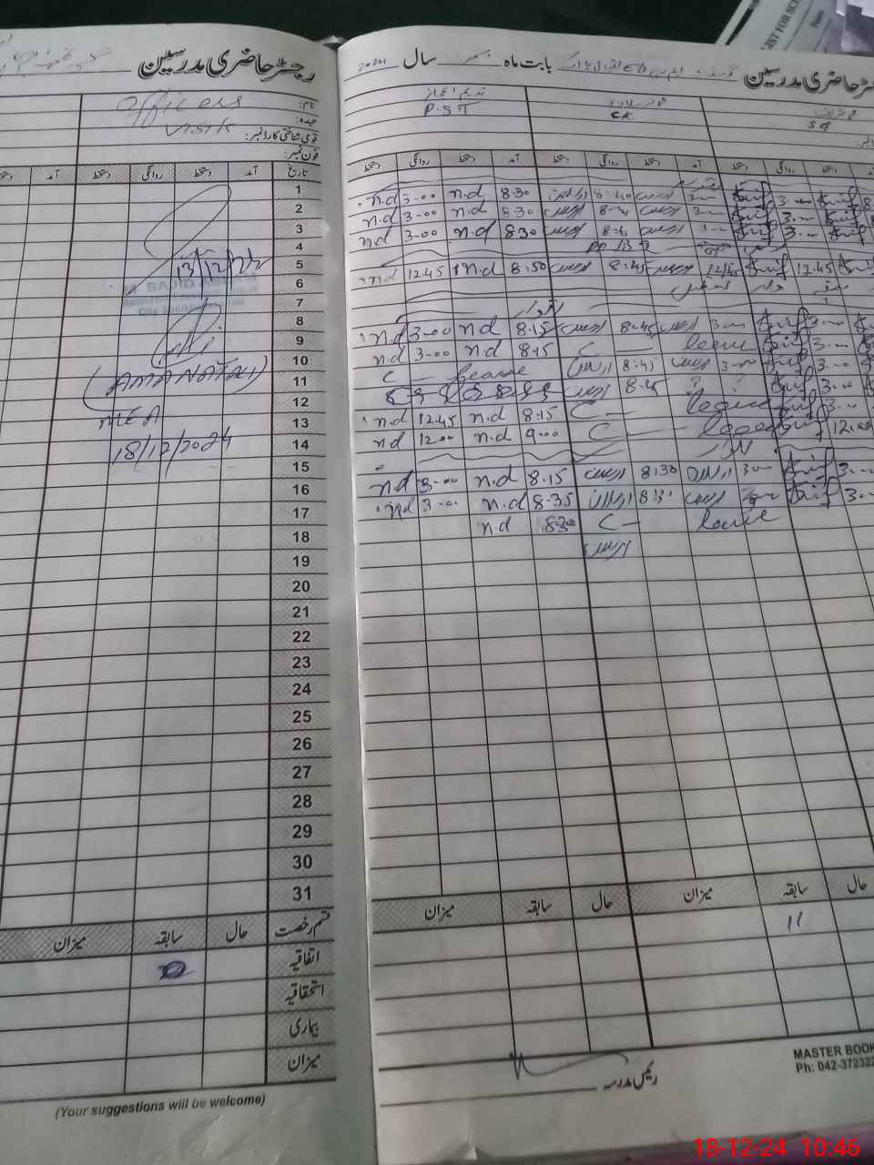 | CNIC | Full Name | Designation | R/C | Absence During Last Calender Month |