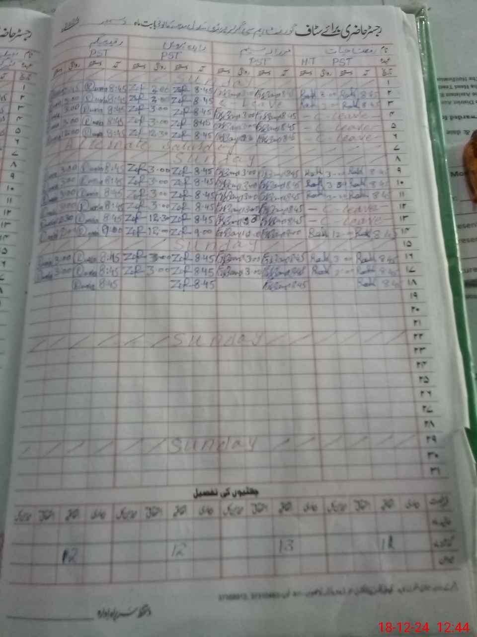 | CNIC | Full Name | Designation | R/C | Absence During Last Calender Month |