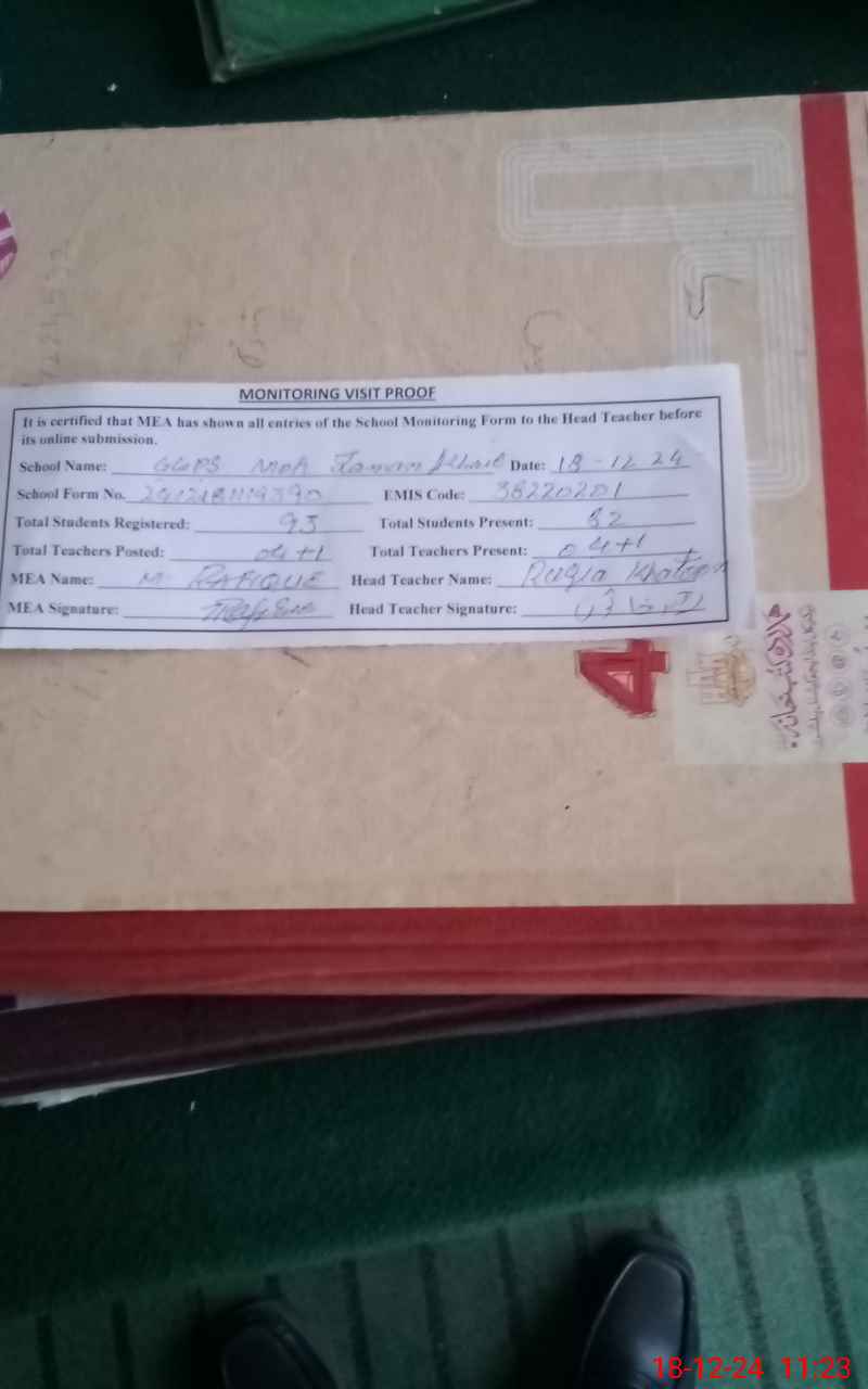 | EMIS Code: 38220201 | Name of School: GGPS ZAMAN KHAIL | |||