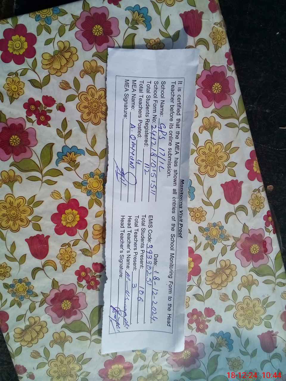 | EMIS Code: 39330251 | Name of School: GPS CHAK 17/1-L | |||
