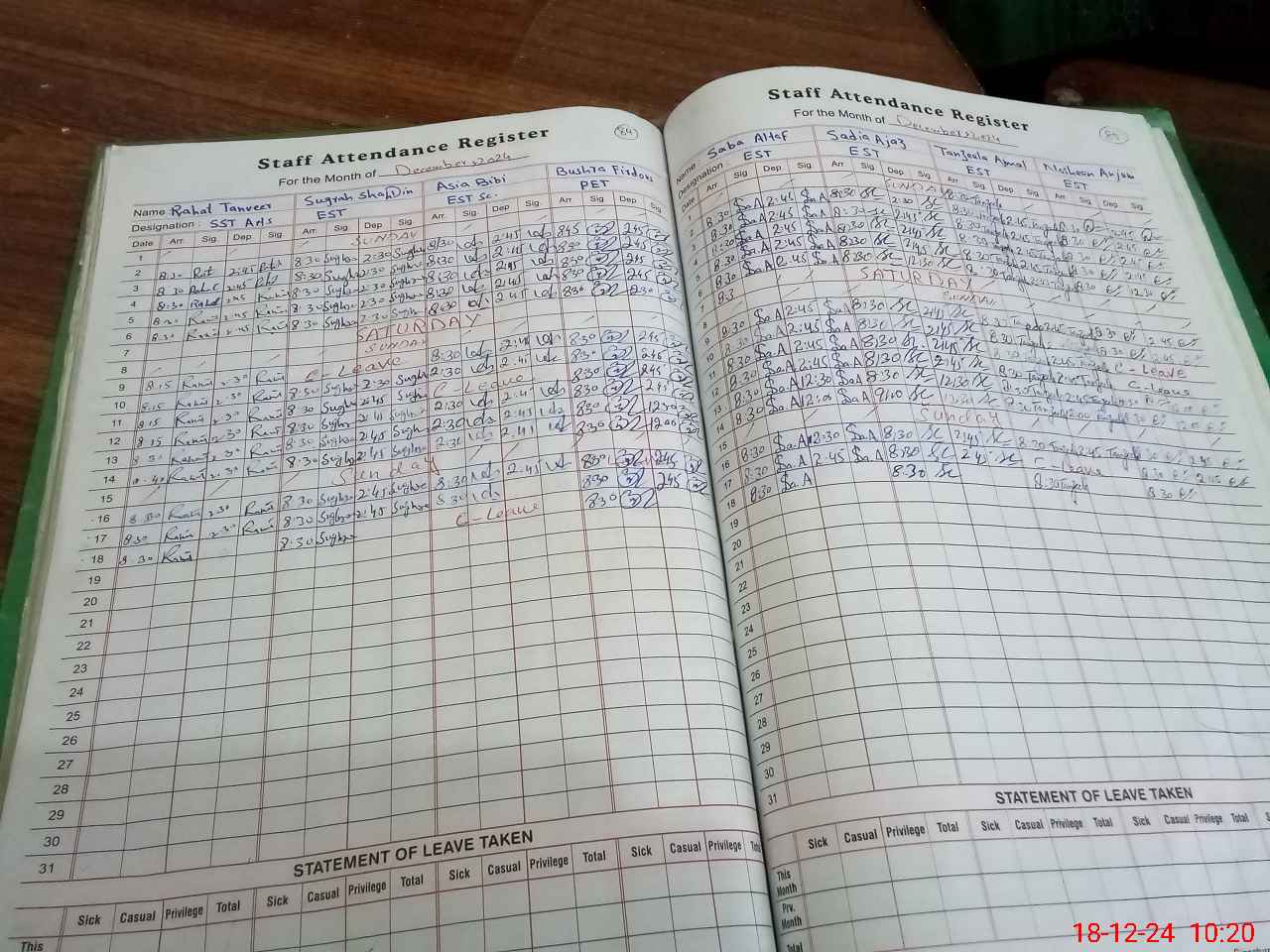 | Remarks (Use Separate Page if Required): No sanctioned leave application is available against the absent teachers | |||||