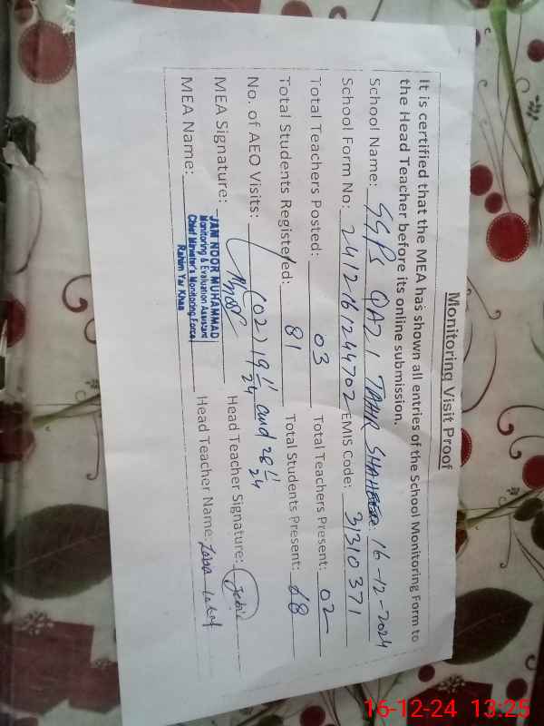 | EMIS Code: 31310371 | Name of School: GGPS QAZI TAHIR SAHEED | |||