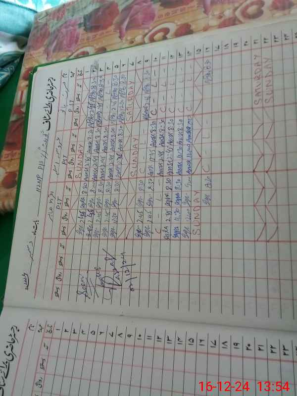 | CNIC | Full Name | Designation | R/C | Absence During Last Calender Month |