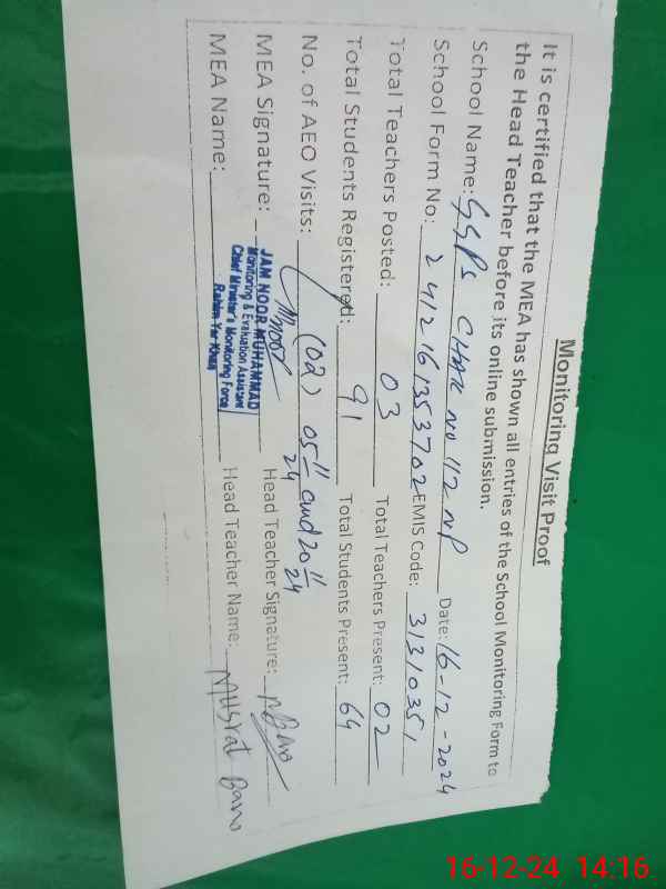 | EMIS Code: 31310351 | Name of School: GGPS CHAK NO. 112/NP | |||