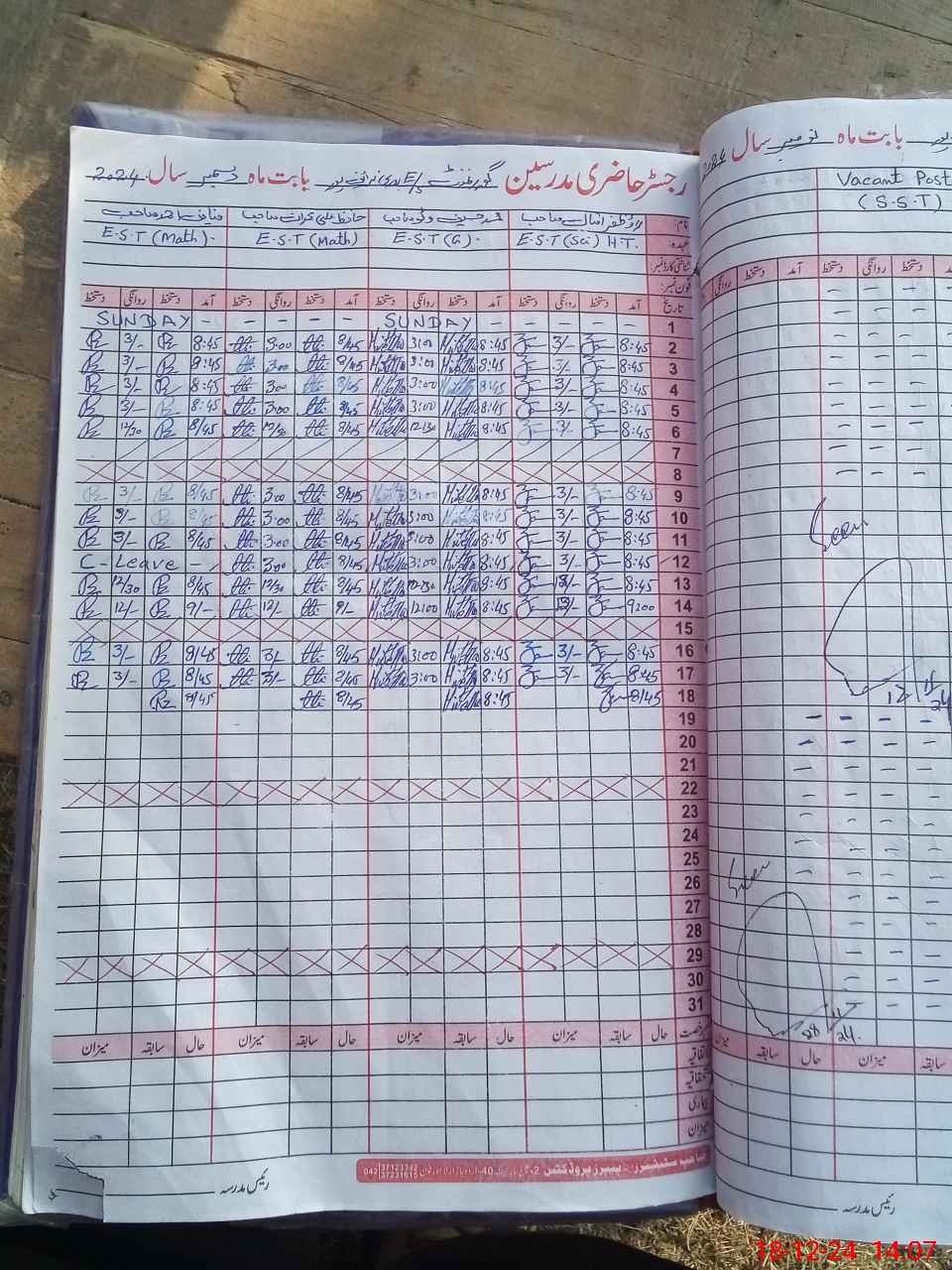 | CNIC | Full Name | Designation | R/C | Absence During Last Calender Month |
