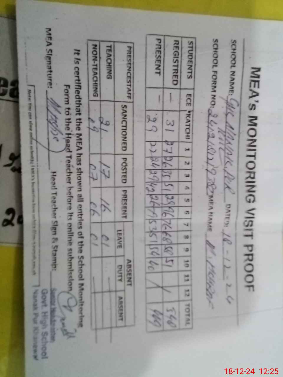 | EMIS Code: 36420007 | Name of School: GHS NANAK PUR, KHANEWAL | |||