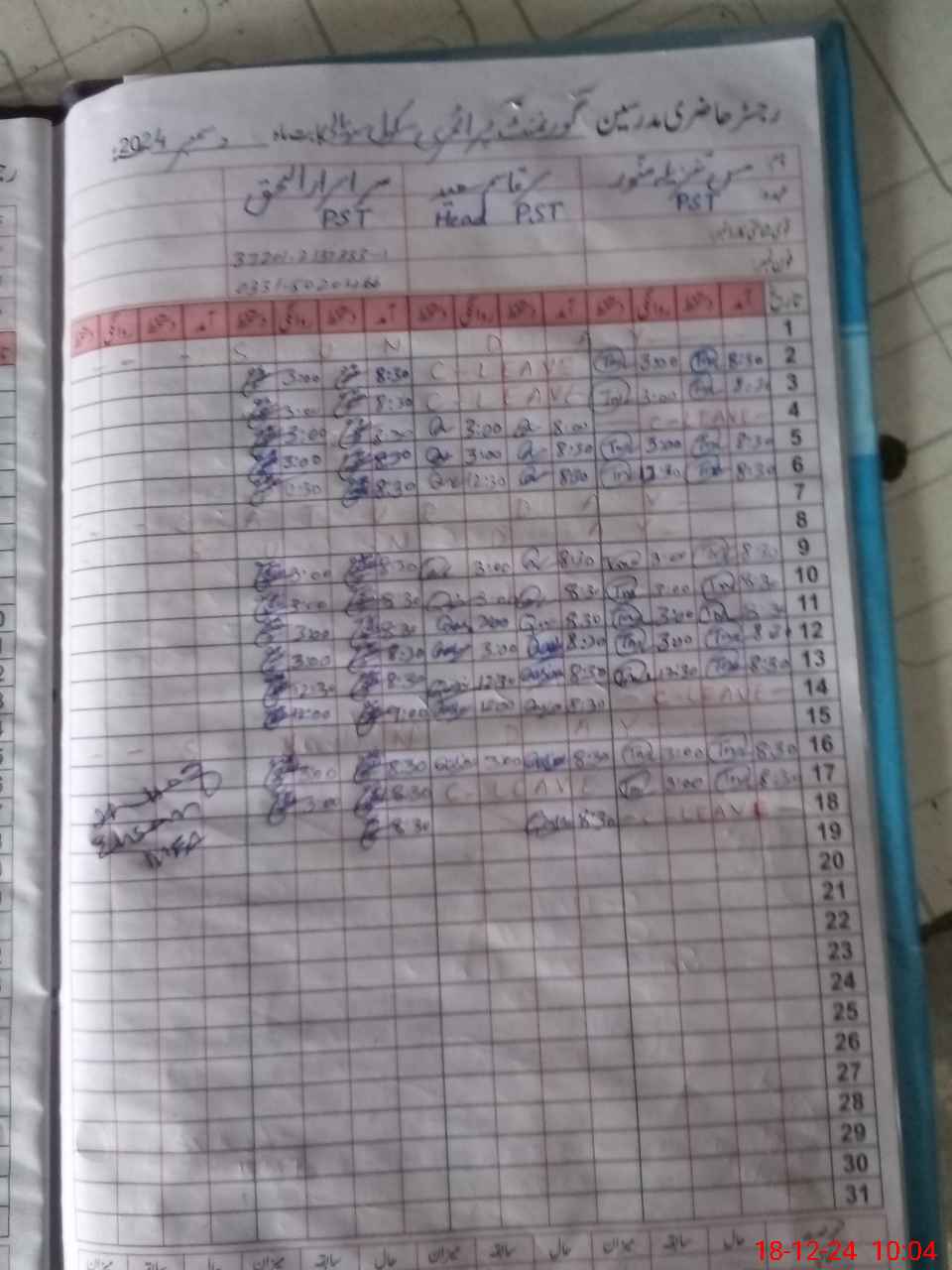 | CNIC | Full Name | Designation | R/C | Absence During Last Calender Month |