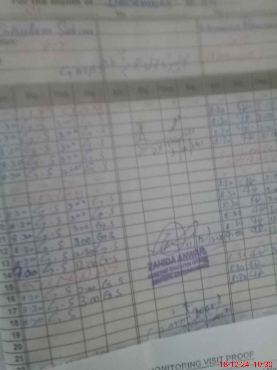 | Monitoring Date: 18-12-2024 | Start Time: 18-12-2024 10:15 AM | End Time: 18-12-2024 10:37 AM | Name of MEA: ZA**** IQ**** | |