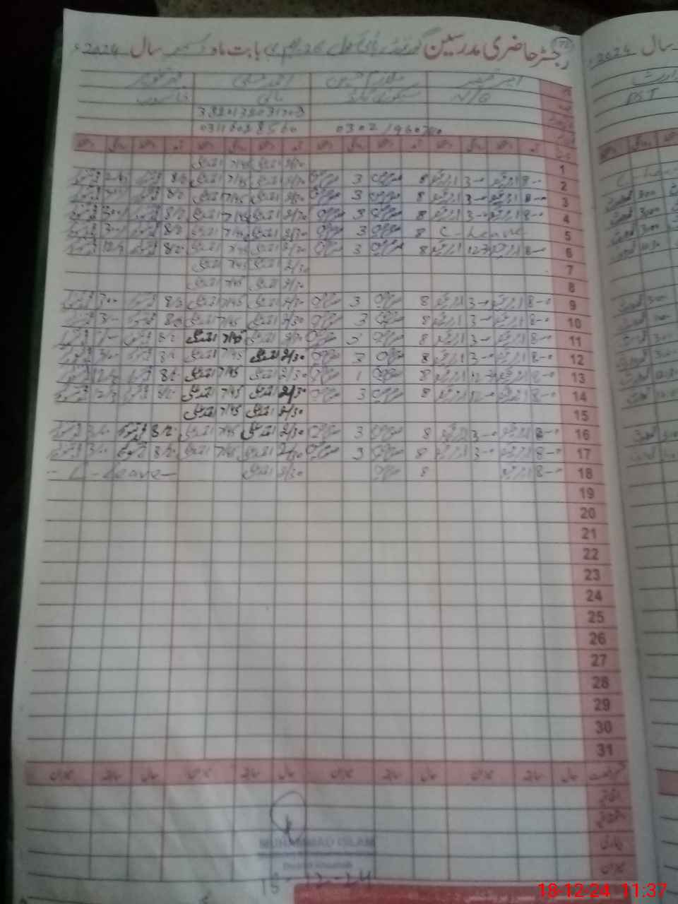 | CNIC | Full Name | Designation | R/C | Absence During Last Calender Month |