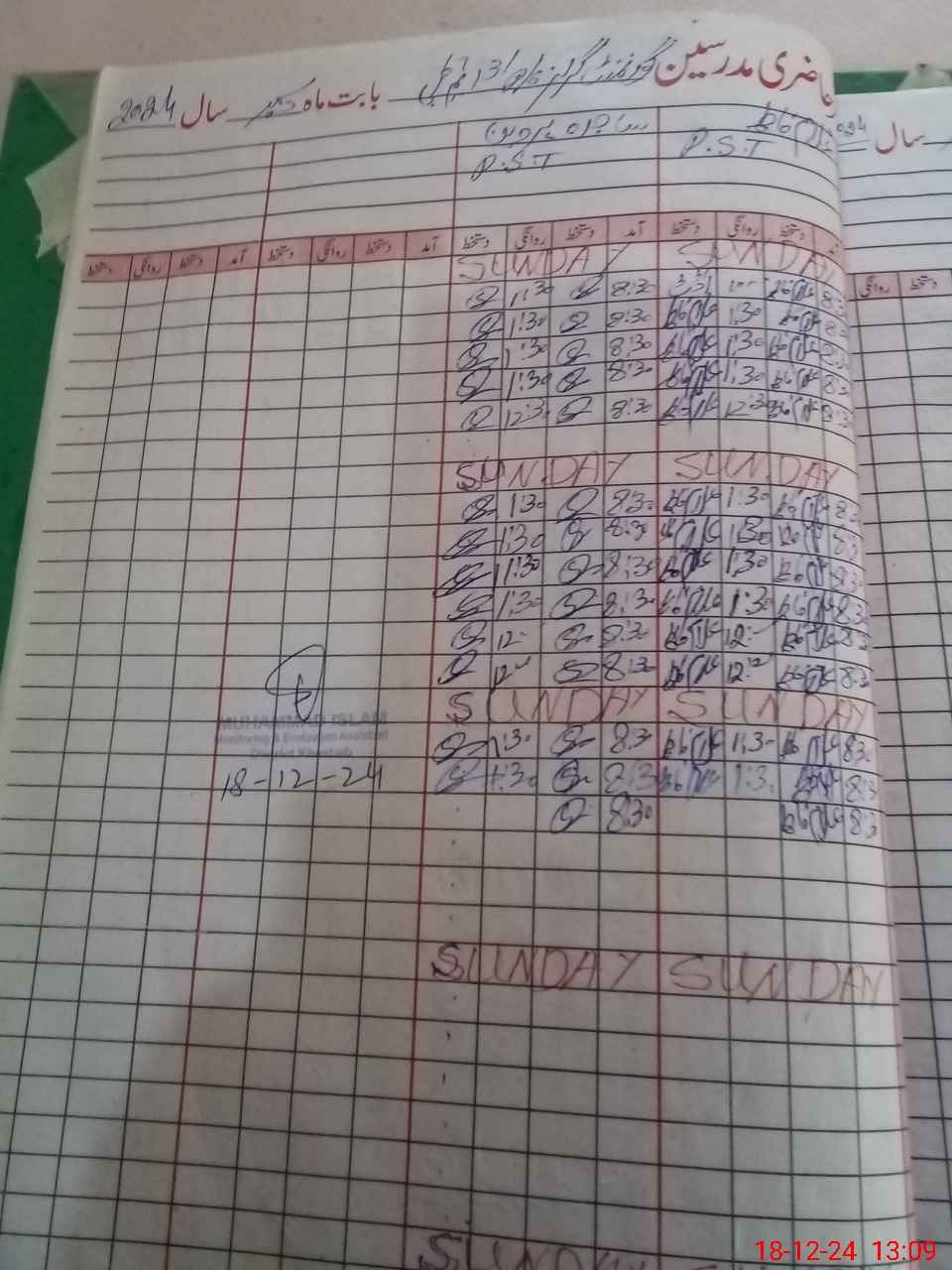| CNIC | Full Name | Designation | R/C | Absence During Last Calender Month |