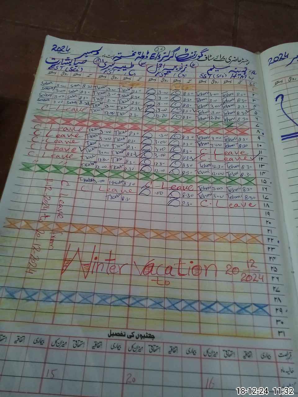 | Leave | Duty | Absent | Maternity | Medical | Ex- Pak |