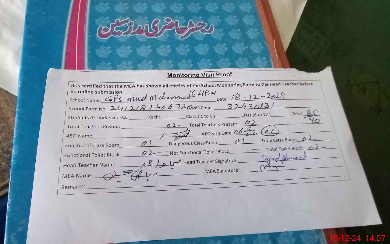 | EMIS Code: 32430131 | Name of School: GPS MUD MUHAMMAD SHAH | |||