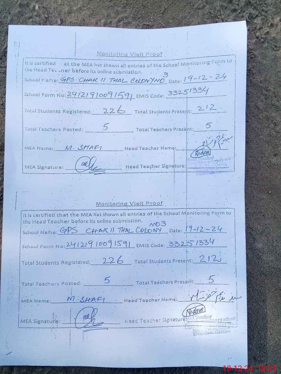 | EMIS Code: 33251334 | Name of School: GPS CHAK 11 THAL COLONY NO 3 | |||
