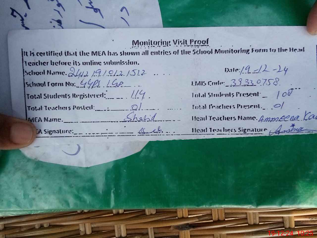 | Certified that this School was Inspected by the Undersigned MEA/DMO Today and the Information Stated Above is as Per Record. | |||||