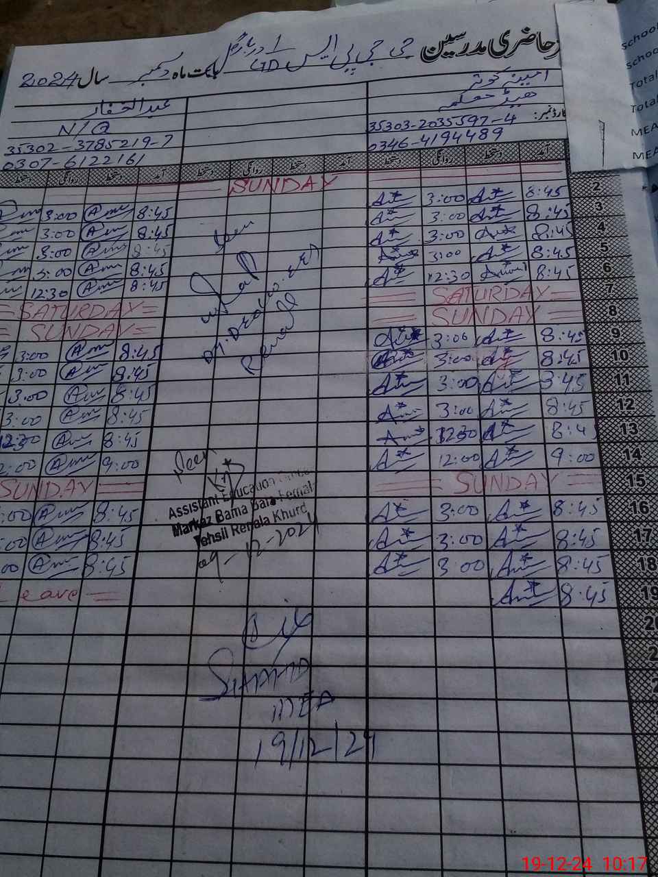 | EMIS Code: 39330758 | Name of School: GGPS CHAK NO.1/GD DARBAR GUL | |||