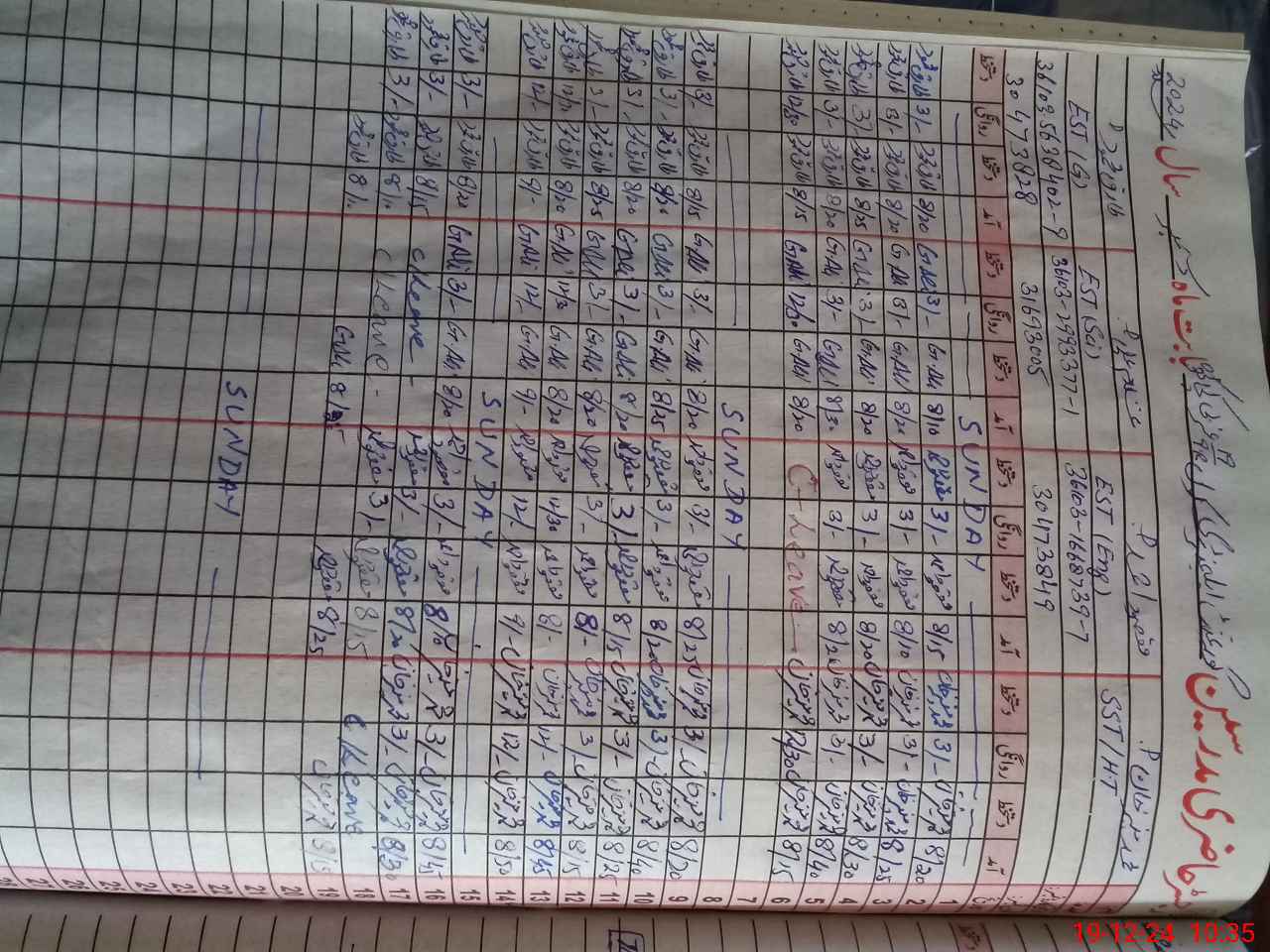 | CNIC | Full Name | Designation | R/C | Absence During Last Calender Month |