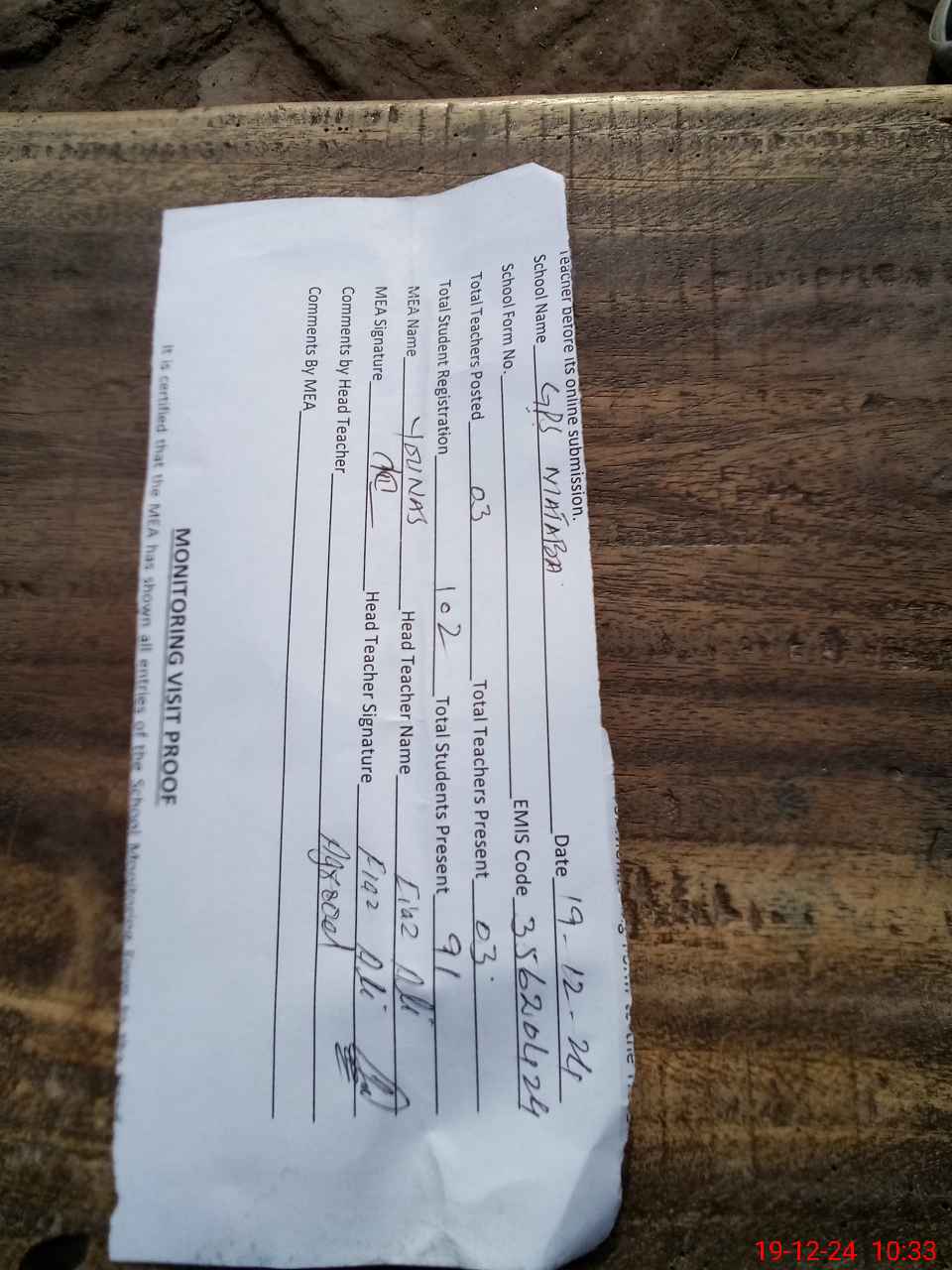 | EMIS Code: 35620424 | Name of School: GPS MATABA CHAK 9 | |||