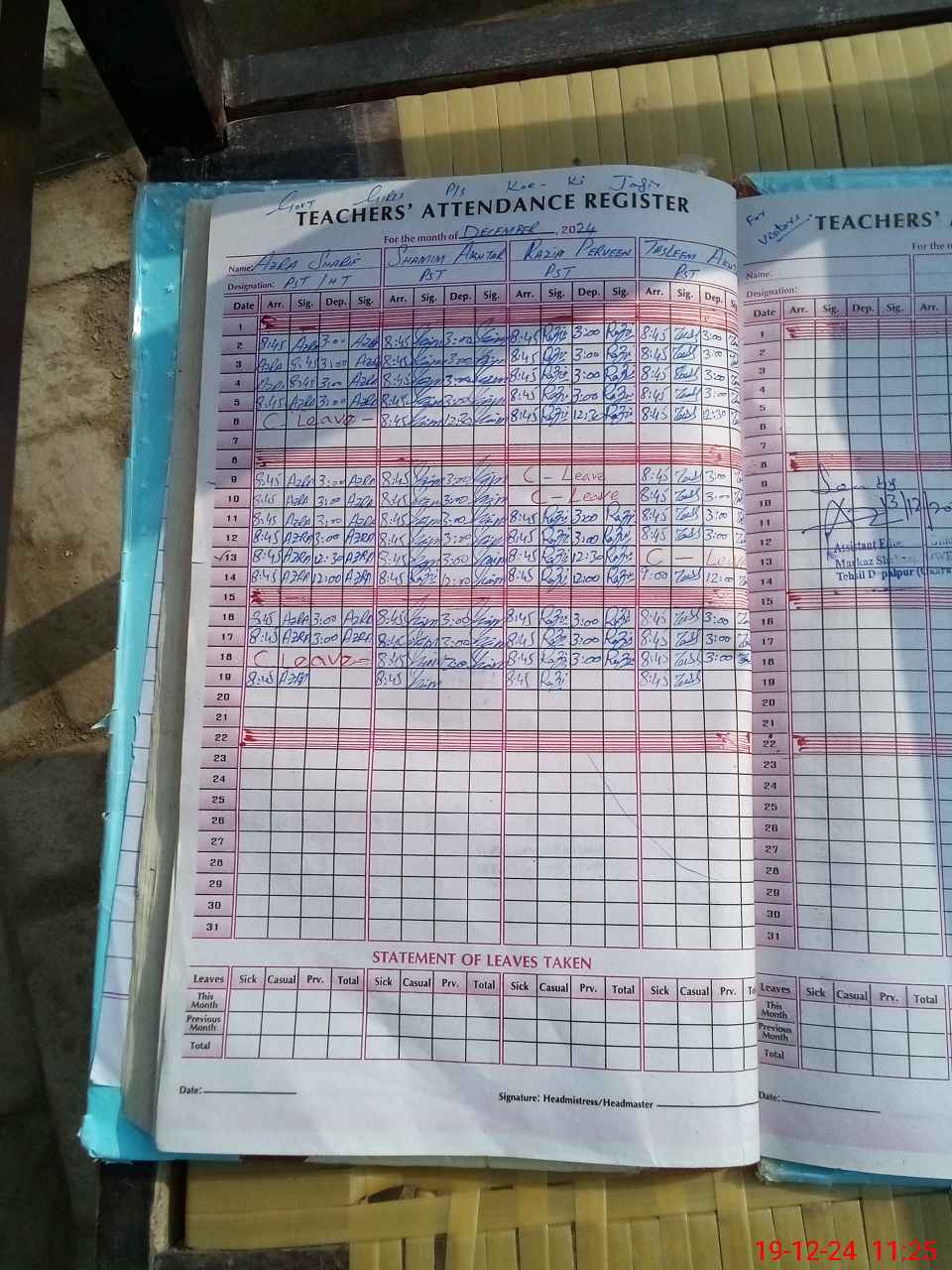 | Name: AZ**** SH**** Designation: (School Headmaster's/Headmistress's) PST Phone/Cell Number: 03**** |
