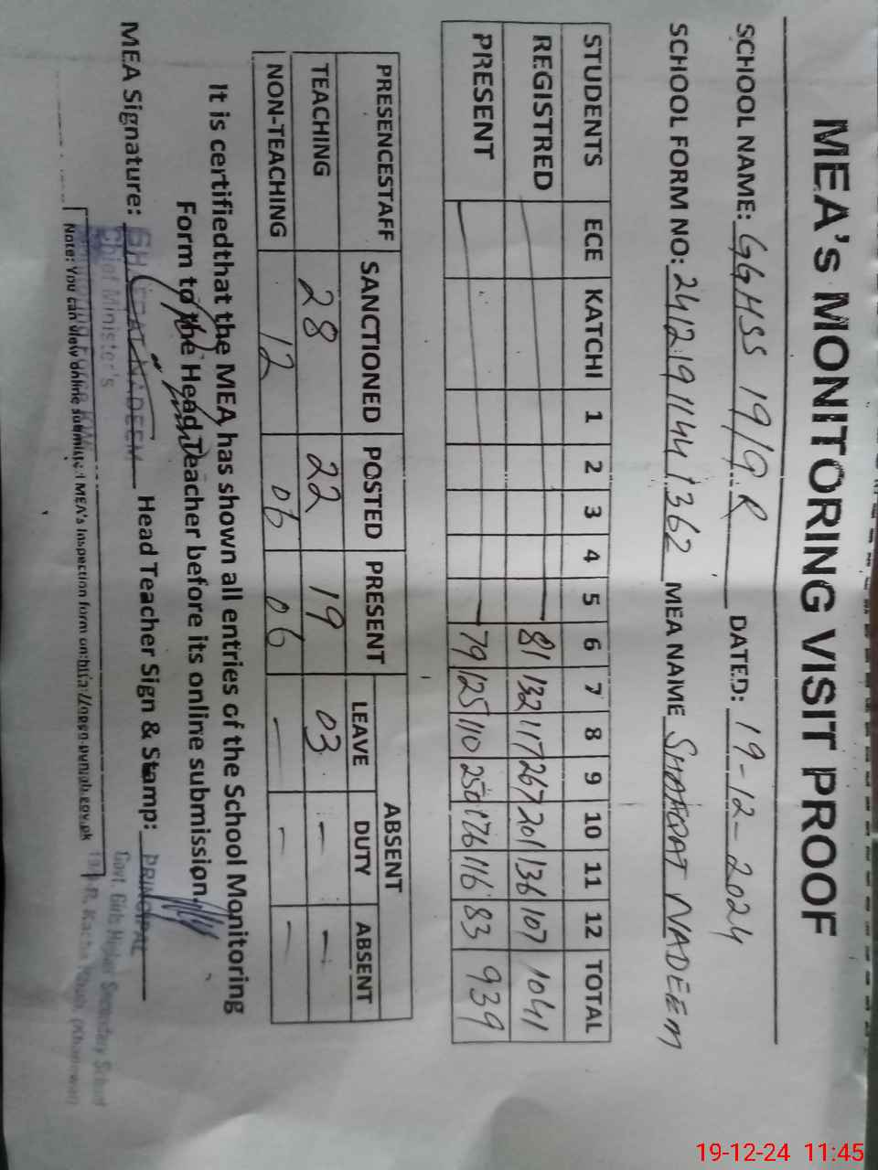 | EMIS Code: 36420054 | Name of School: GGHSS 19/9-R, KACHA KHUH | |||