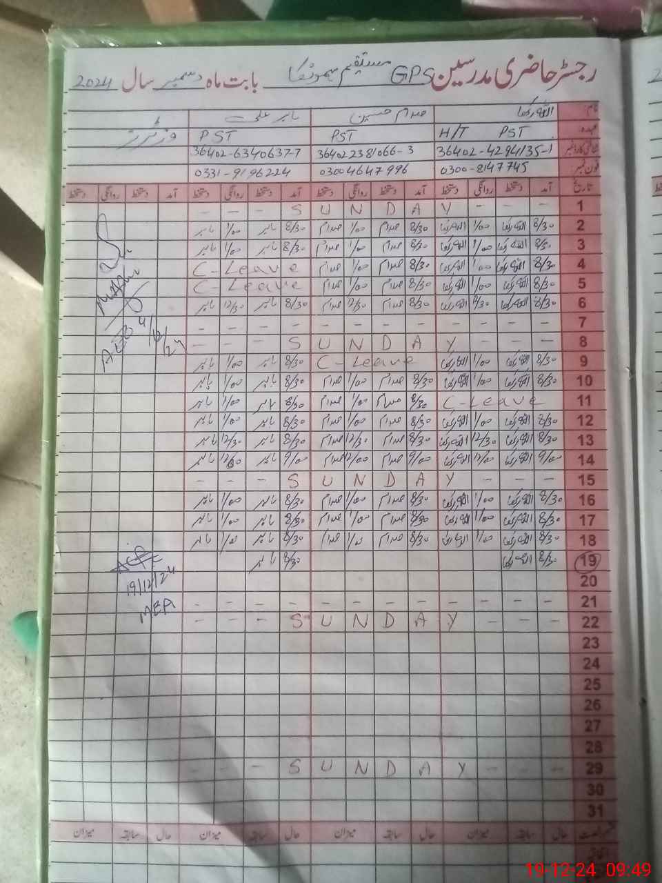 | Name: AL**** RA**** Designation: (School Headmaster's/Headmistress's) PST Phone/Cell Number: 03**** |