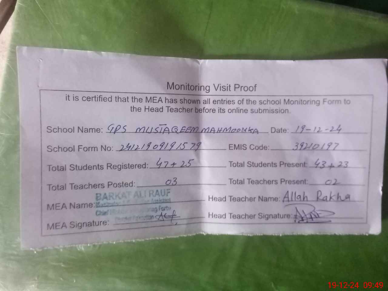 | EMIS Code: 39210197 | Name of School: GPS MUSTAQEEM MAHMONKA P/O PAKPATTAN | |||