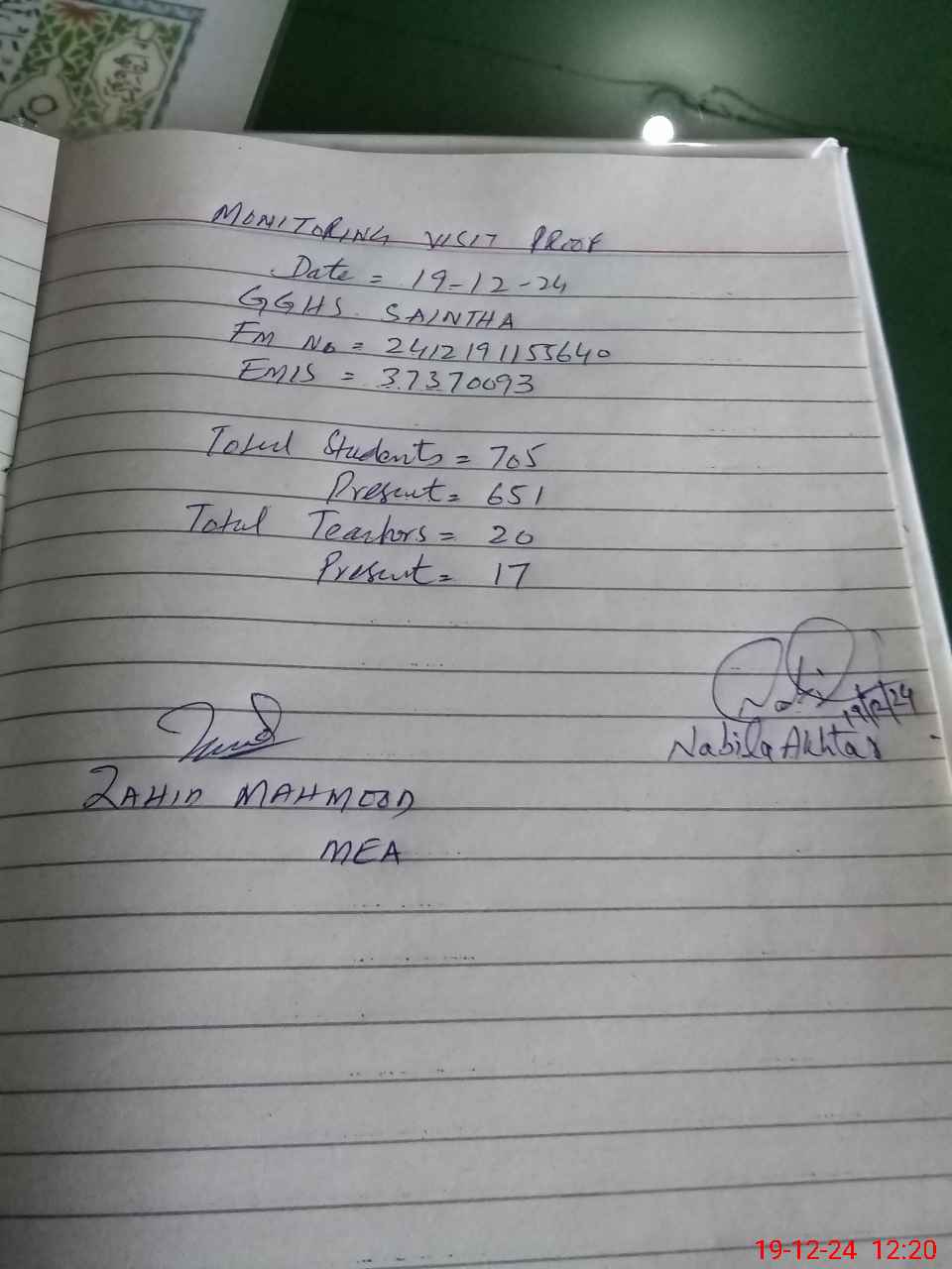 | EMIS Code: 37370093 | Name of School: GGHS SAINTHA | |||