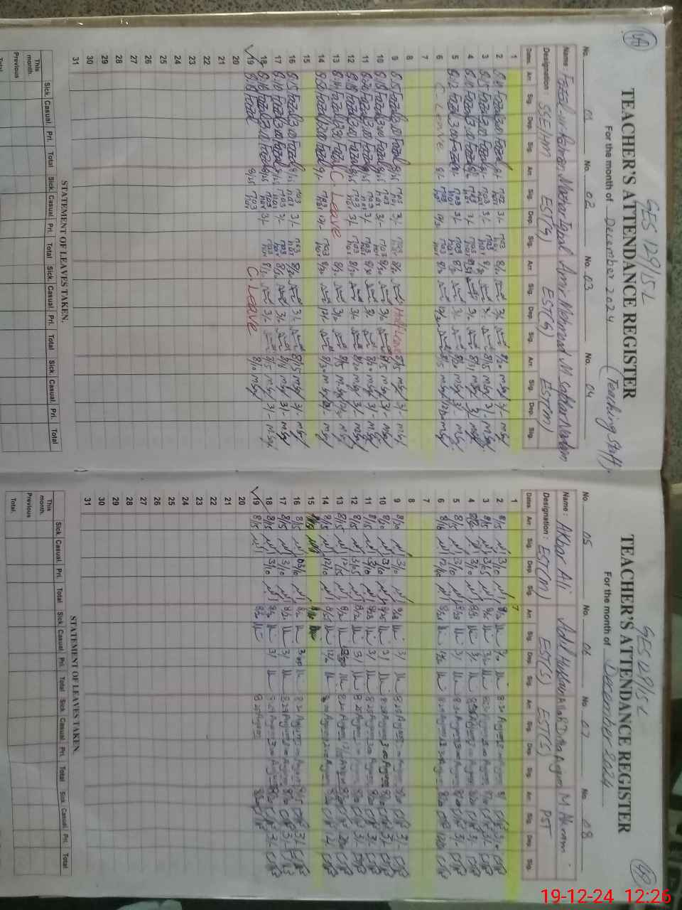 | Remarks (Use Separate Page if Required): AAMIR MEHMOOD EST GENERAL IS ON CASUAL LEAVE TODAY MANUAL LEAVE APPLICATION IS AVAILABLE DUE TO SIS IS NOT WORKING RANDOM CLASS FIVE IS NOW IN CLASS EIGHT | |||||