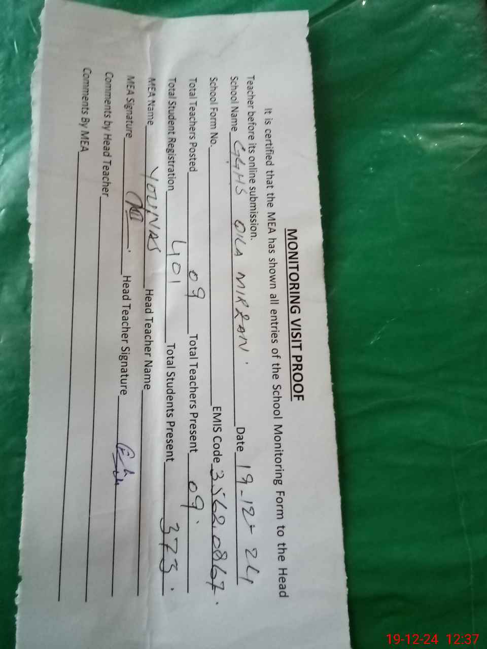 | EMIS Code: 35620867 | Name of School: GGHS QILA MIR ZAMAN | |||