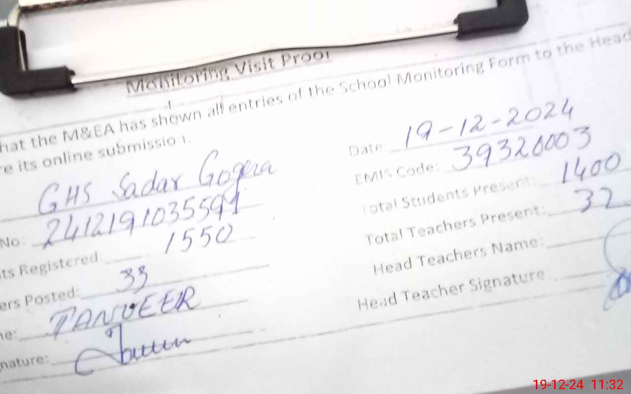 | EMIS Code: 39320003 | Name of School: GHS SADAR GOGERA | |||