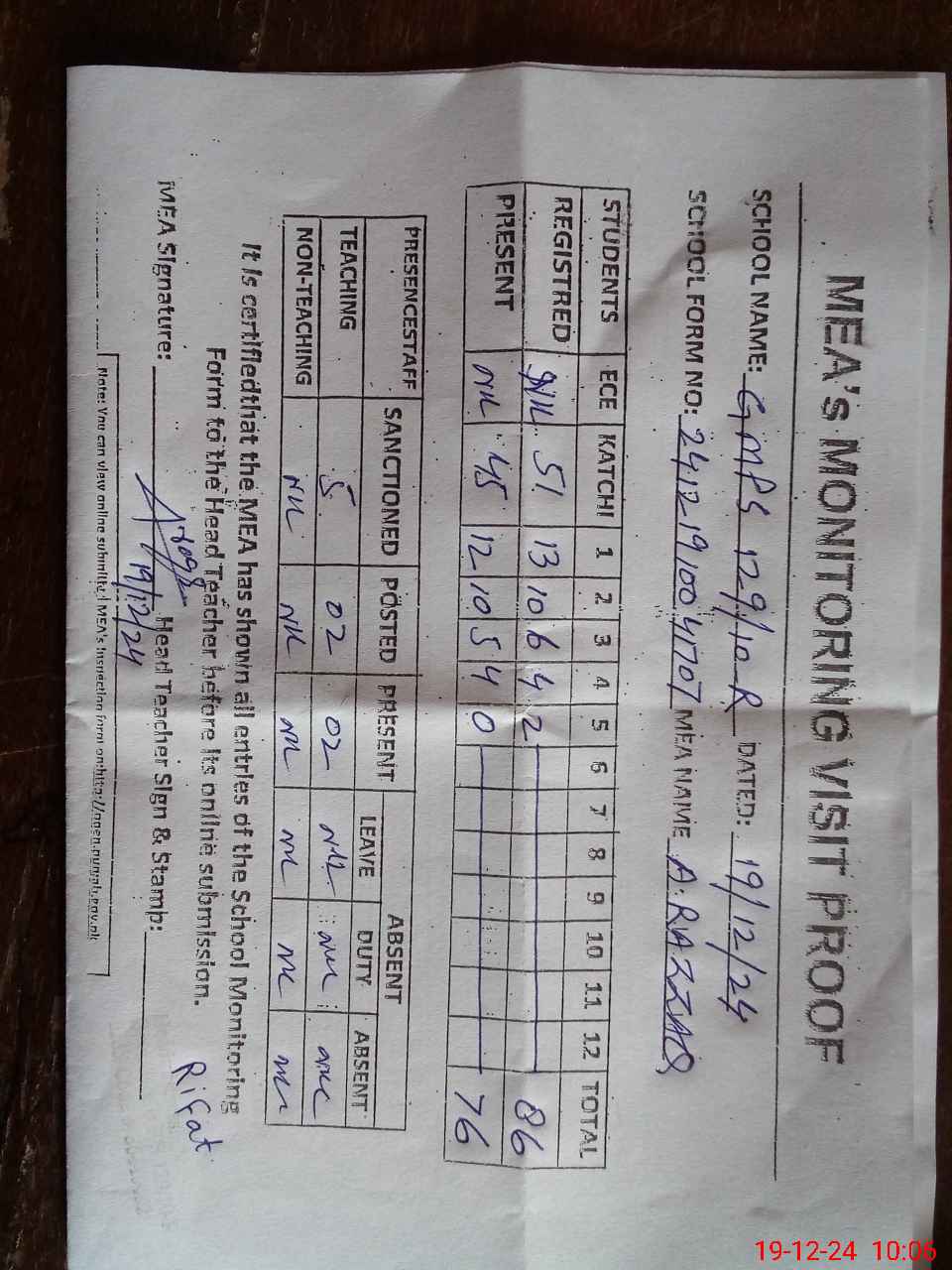| EMIS Code: 36440492 | Name of School: GMPS 129/10-R, JAHANIAN | |||