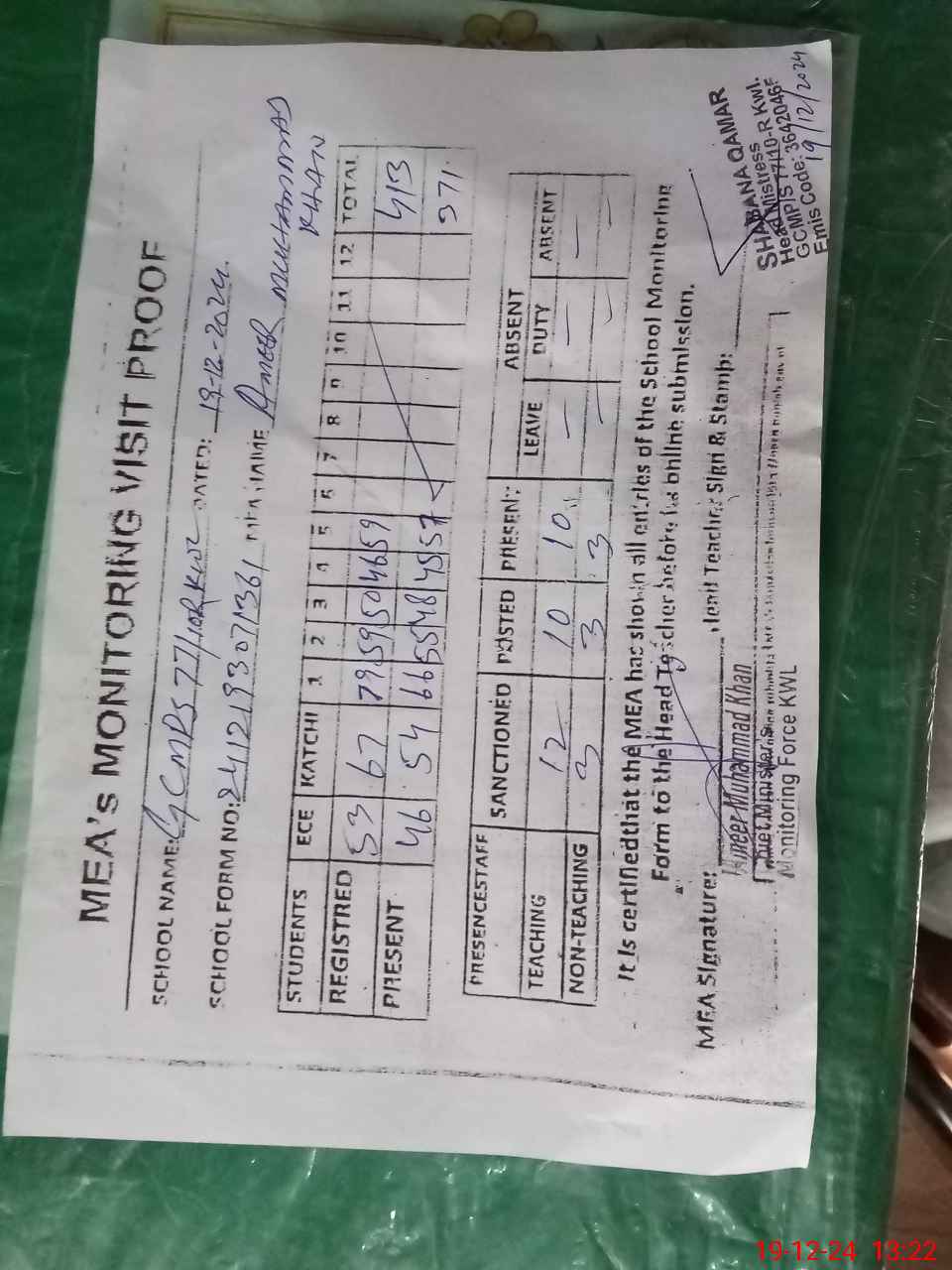 | EMIS Code: 36420465 | Name of School: GCMES 77/10-R KACHA KHUH | |||
