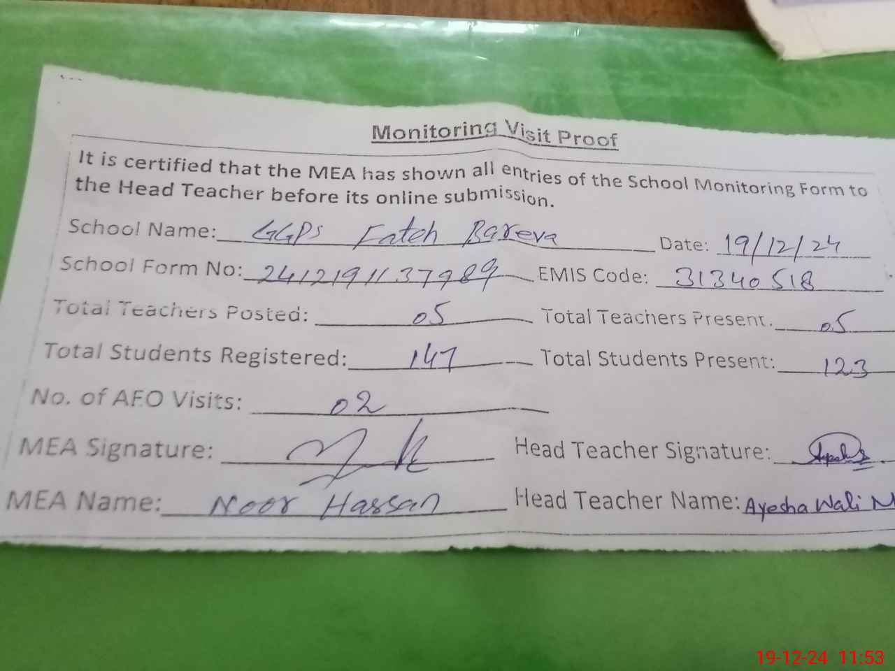 | EMIS Code: 31340518 | Name of School: GGPS FATEH BARERA | |||