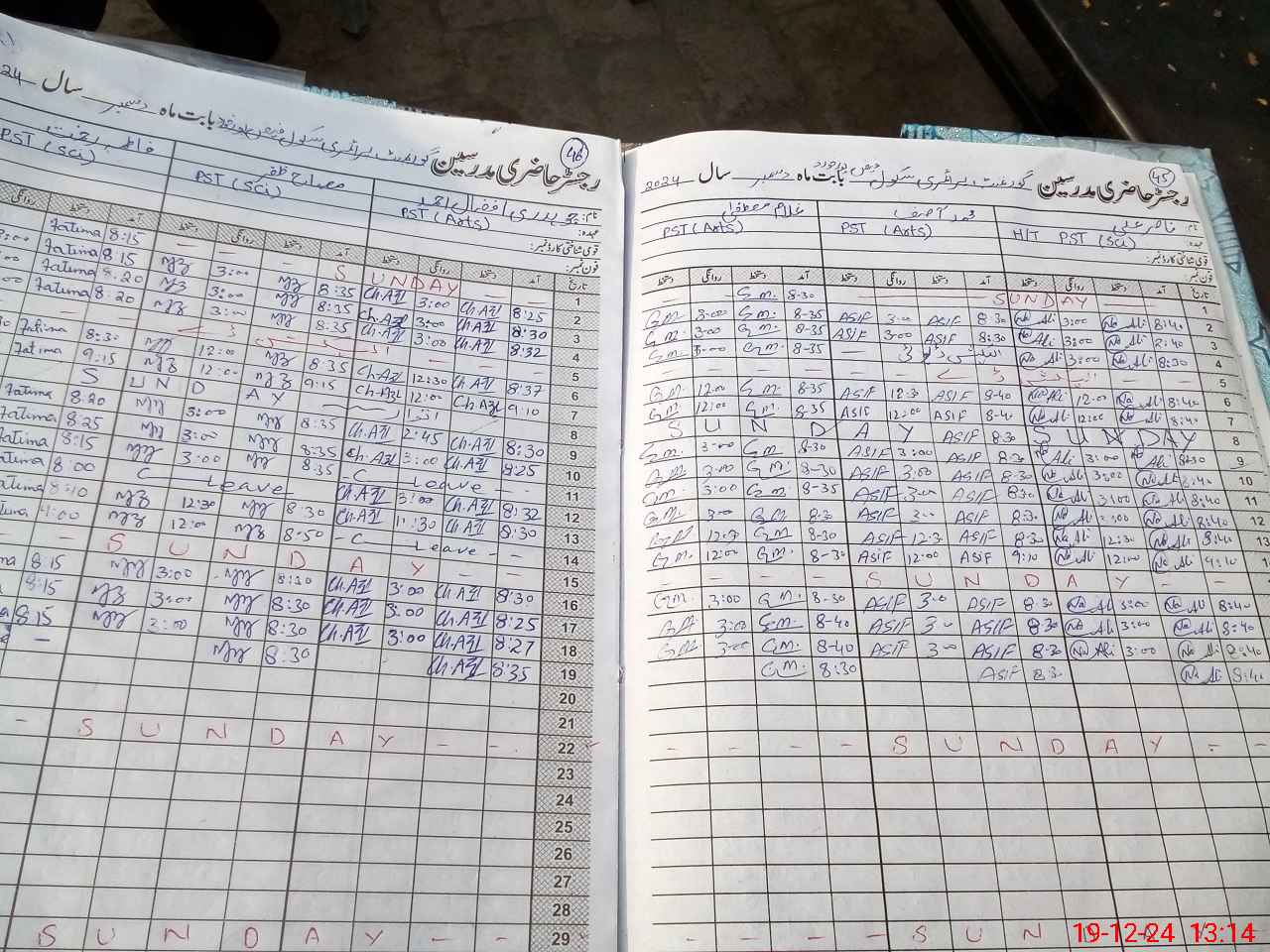 | CNIC | Full Name | Designation | R/C | Absence During Last Calender Month |