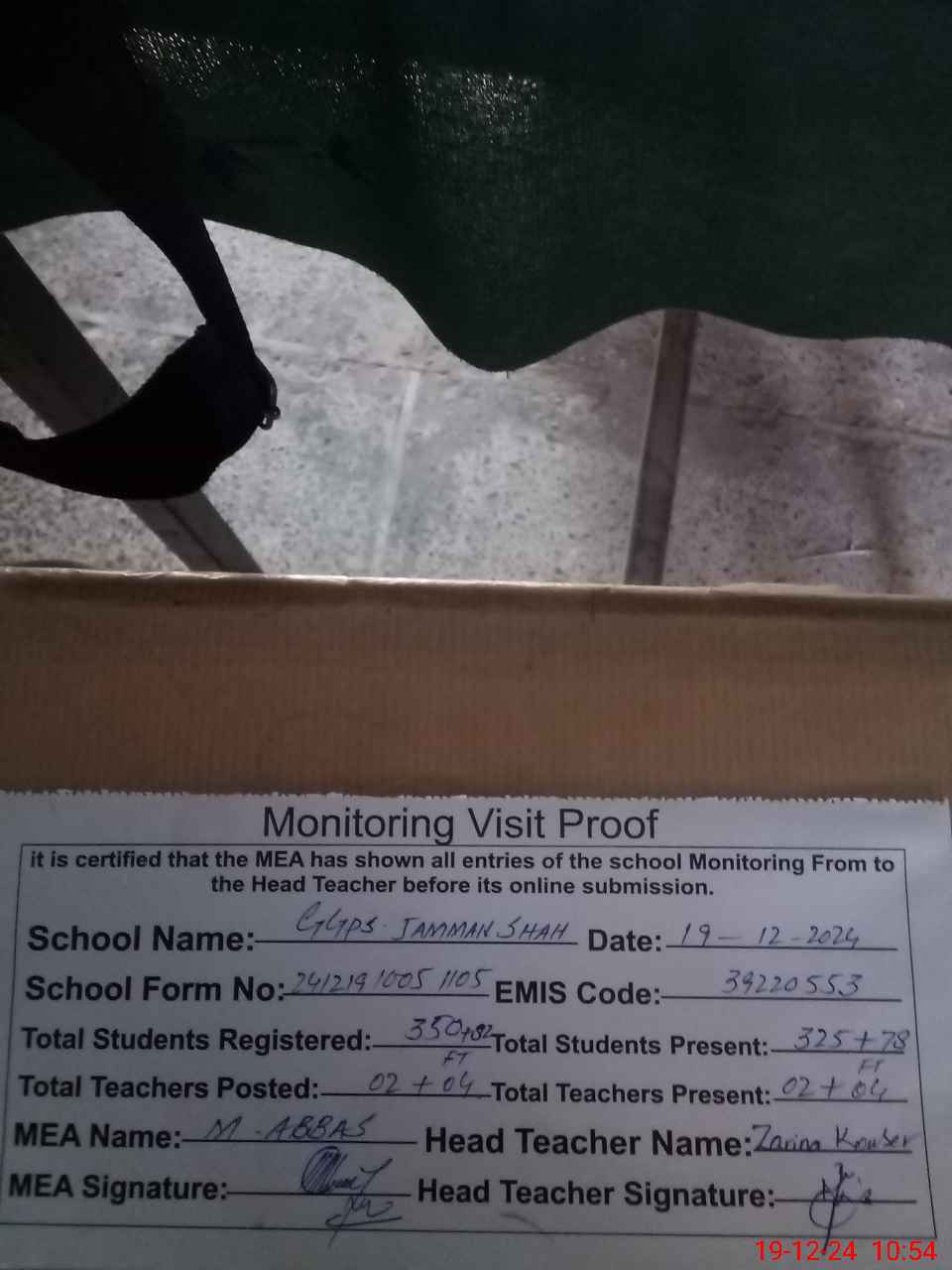 | EMIS Code: 39220553 | Name of School: GGPS JAMAN SHAH | |||