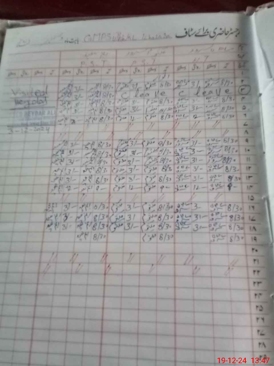 | Leave | Duty | Absent | Maternity | Medical | Ex- Pak |