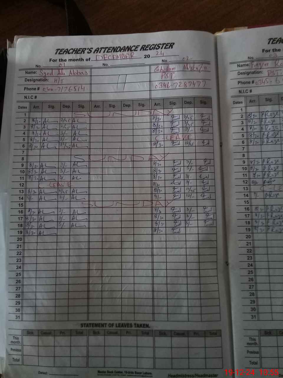 | Name: Sy**** Al**** Ab**** Designation: (School Headmaster's/Headmistress's) PST Phone/Cell Number: 03**** |