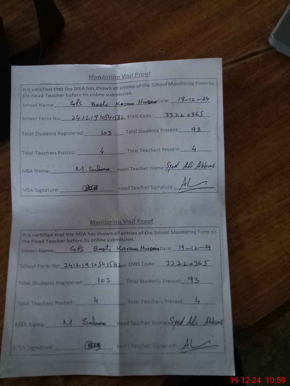 | EMIS Code: 33220365 | Name of School: GPS BASTI KARAM HUSSAIN | |||