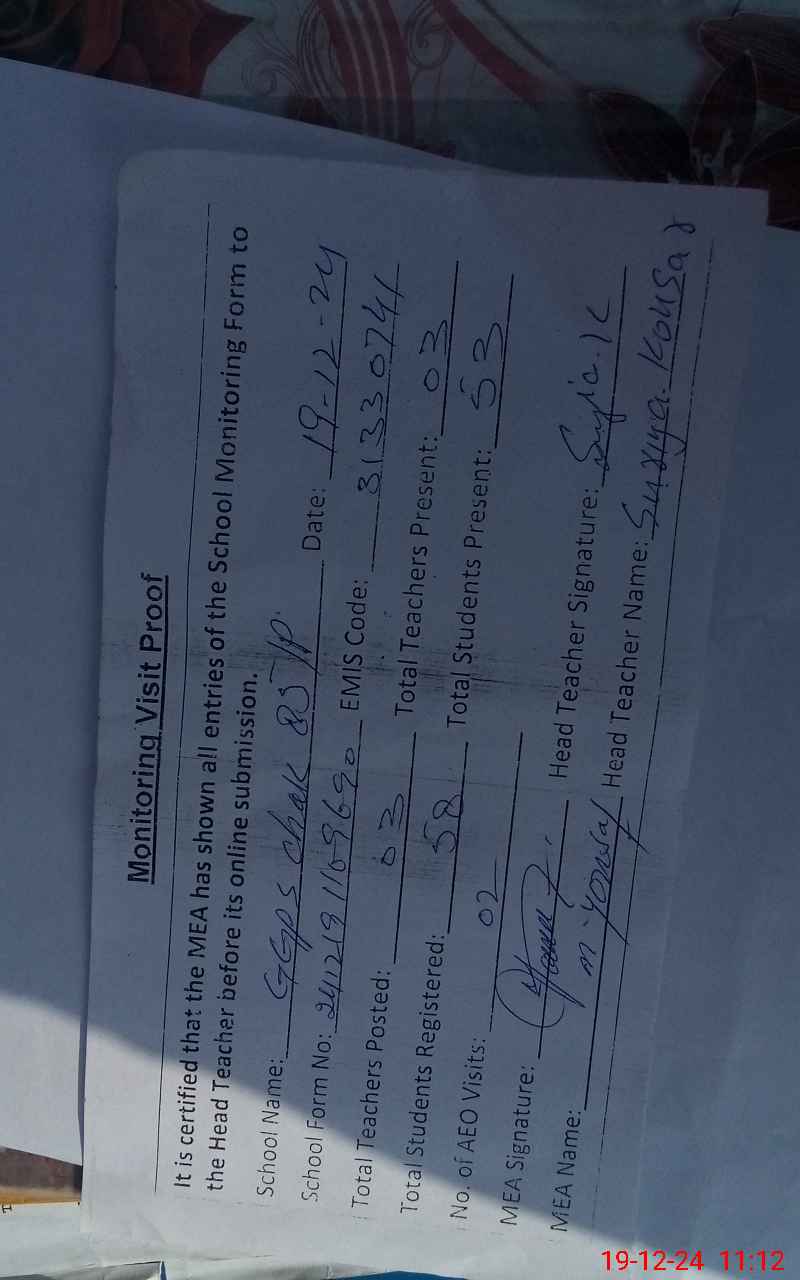 | EMIS Code: 31330741 | Name of School: GGPS CHAK NO. 85/P | |||