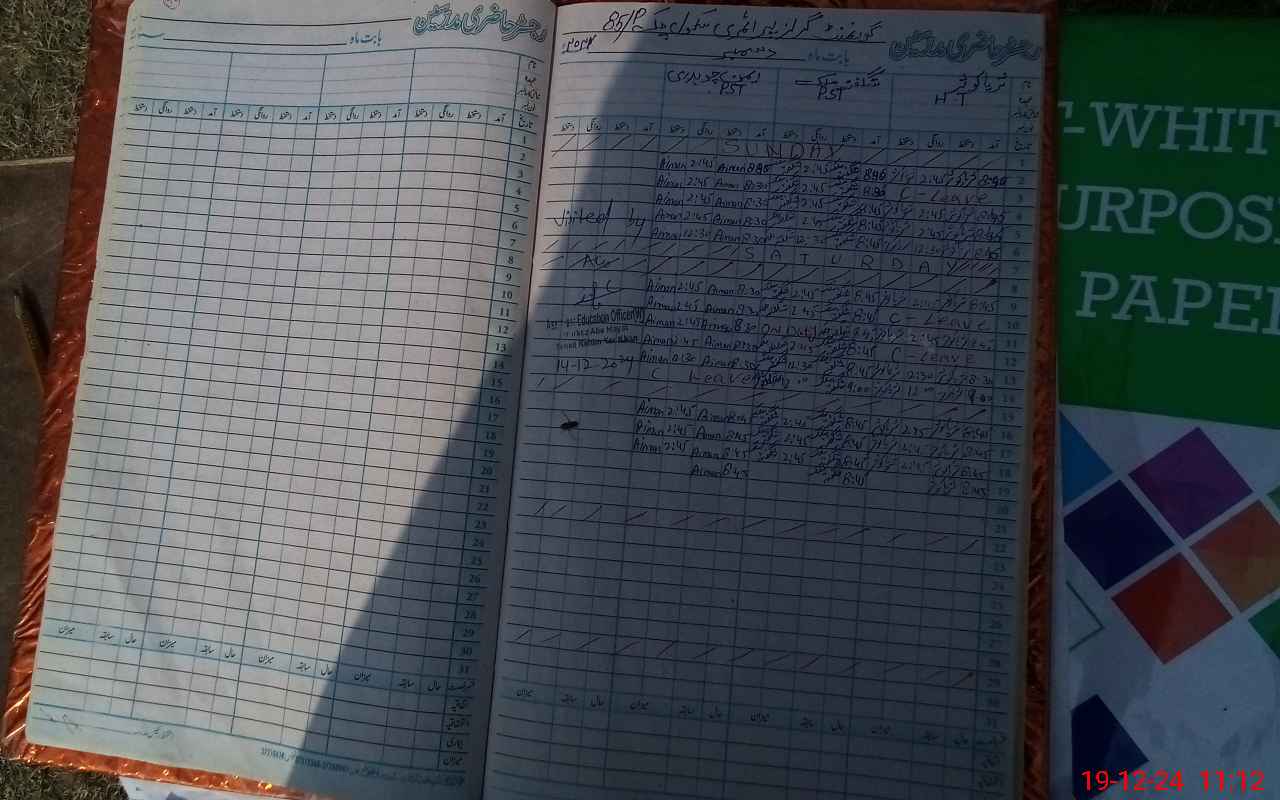 | CNIC | Full Name | Designation | R/C | Absence During Last Calender Month |