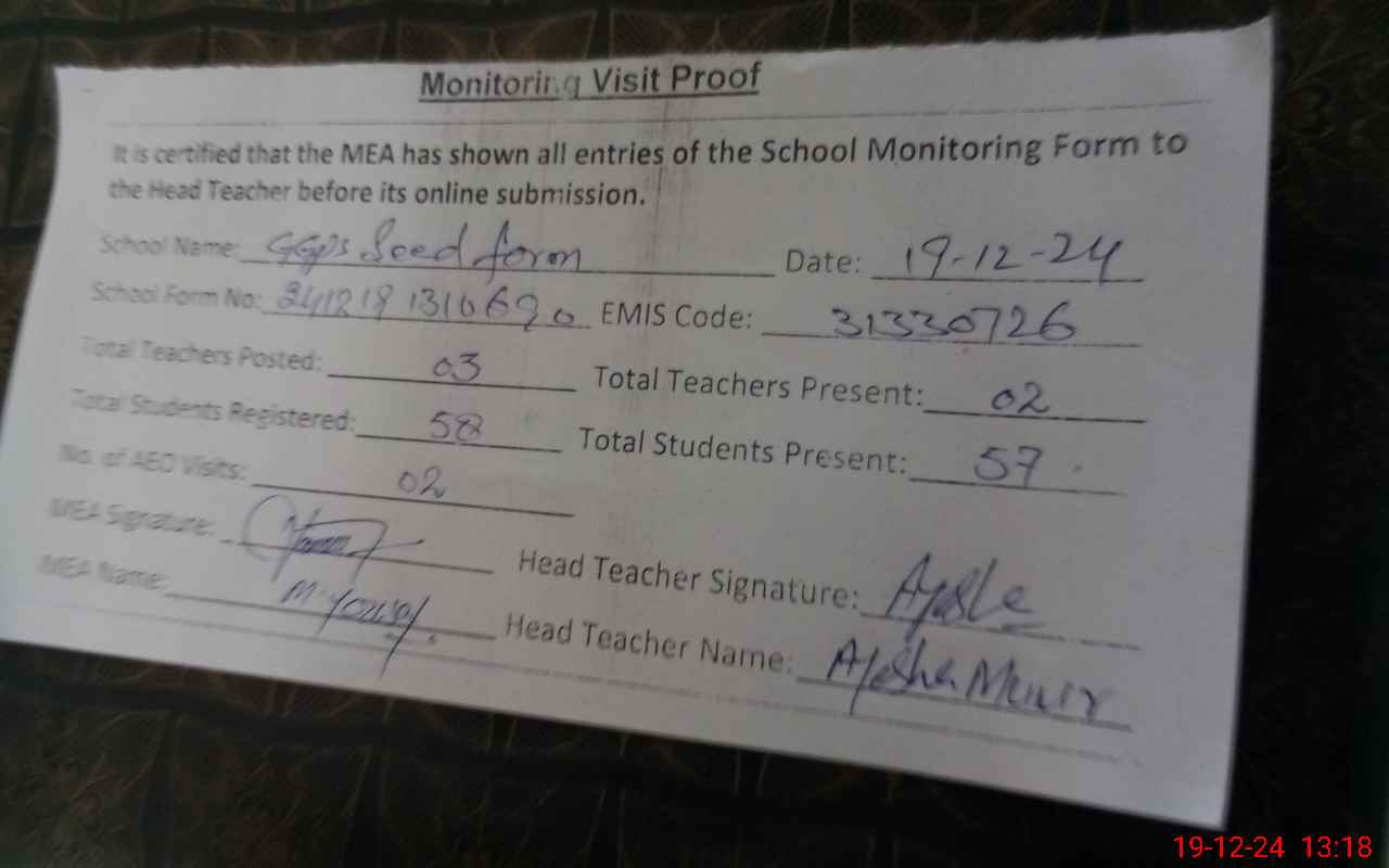 | EMIS Code: 31330726 | Name of School: GGPS SEED FARM | |||