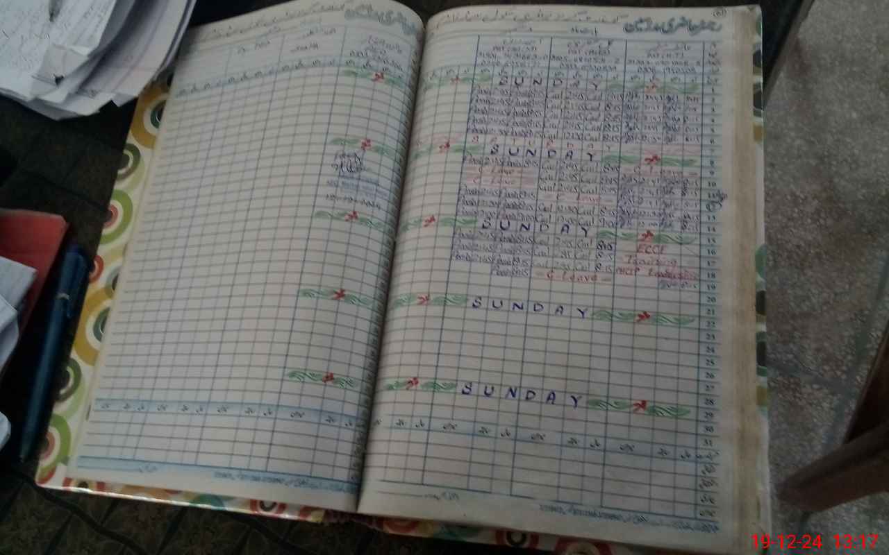 | CNIC | Full Name | Designation | R/C | Absence During Last Calender Month |
