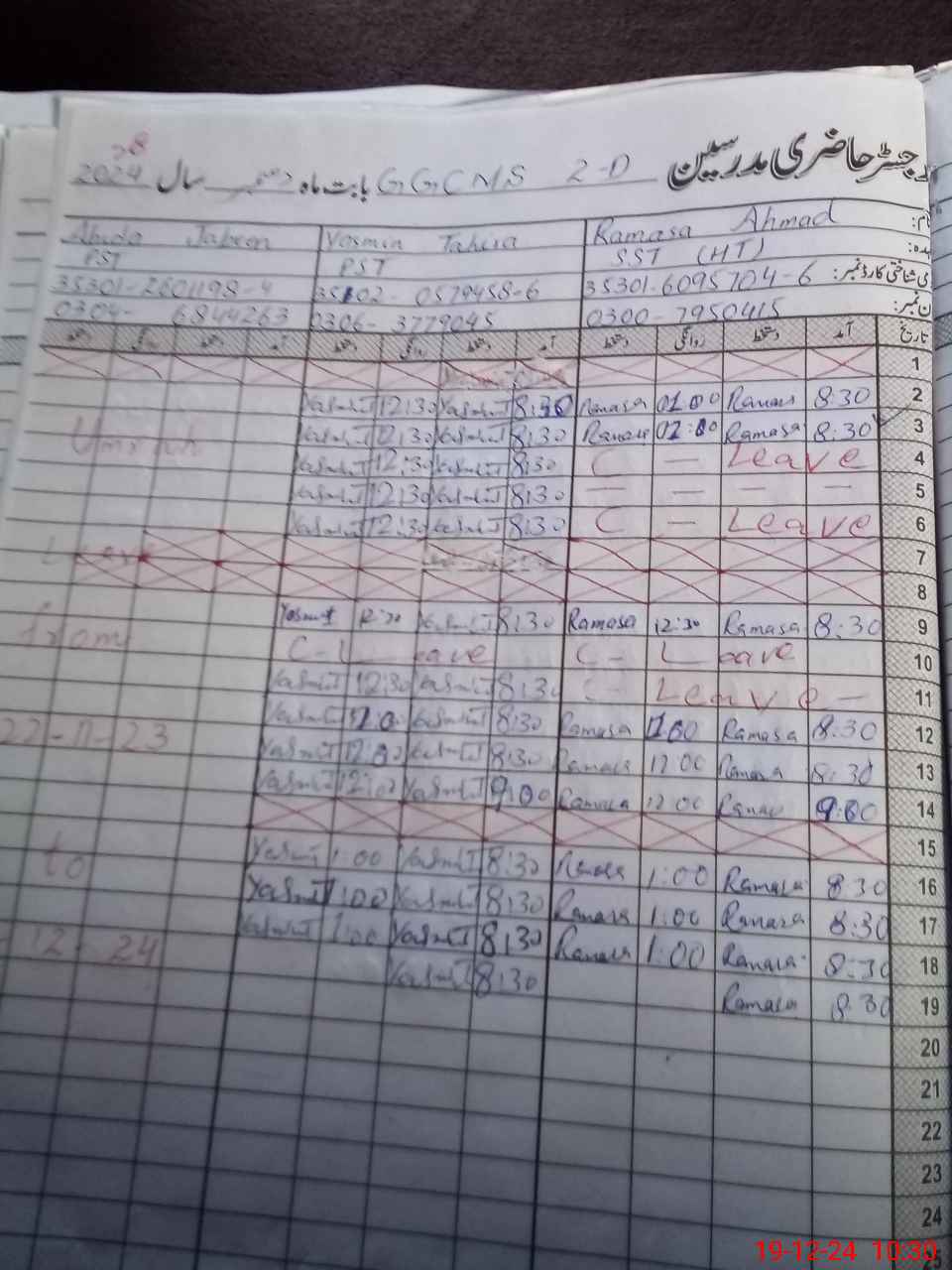 | CNIC | Full Name | Designation | R/C | Absence During Last Calender Month |