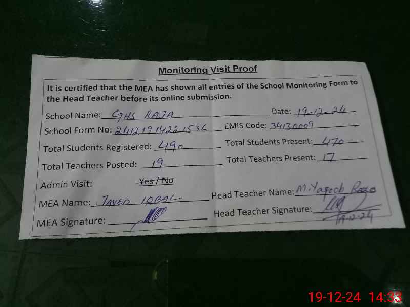 | EMIS Code: 34130009 | Name of School: GHS RAJA | |||