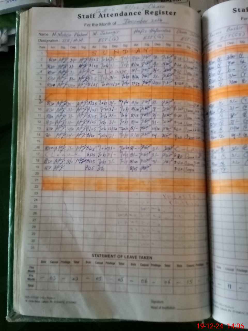 | Name: Mu**** Ja**** Designation: (School Headmaster's/Headmistress's) S.S.T.(Arts) Phone/Cell Number: 03**** |