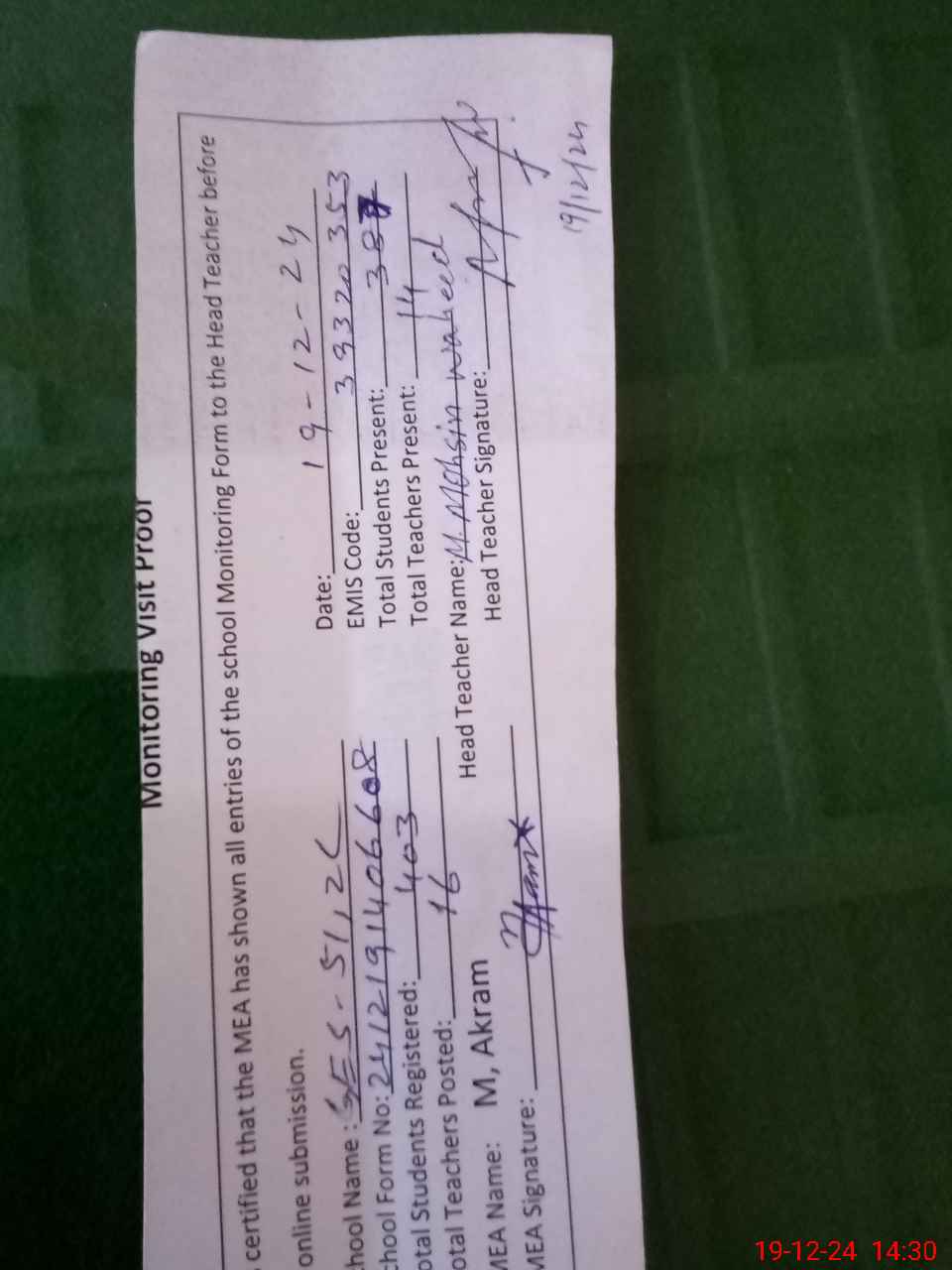 | Certified that this School was Inspected by the Undersigned MEA/DMO Today and the Information Stated Above is as Per Record. | |||||