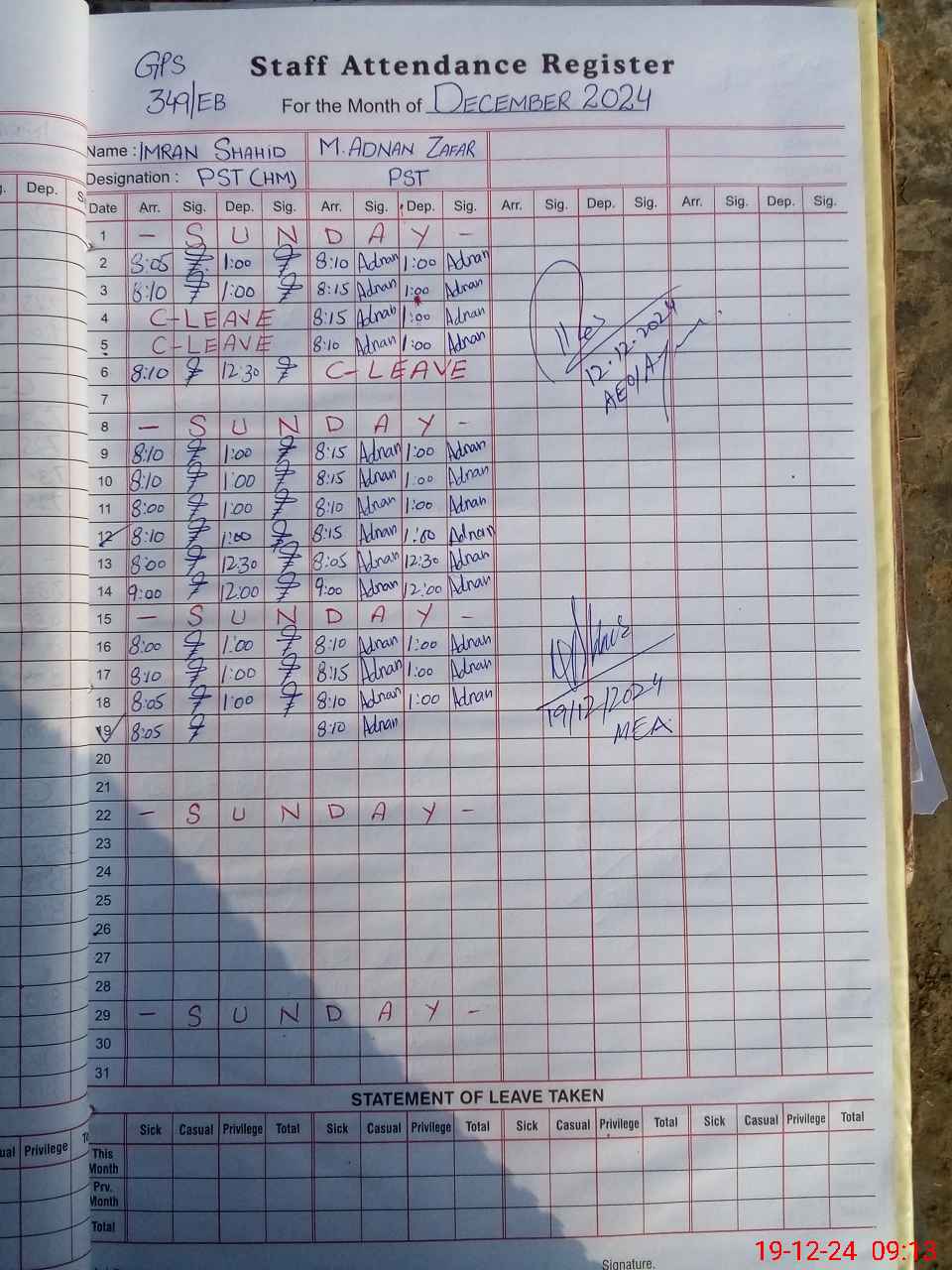 | Name: IM**** SH**** Designation: (School Headmaster's/Headmistress's) PST Phone/Cell Number: 03**** |